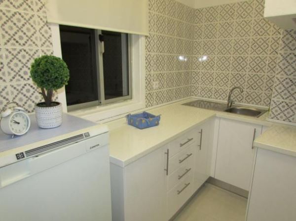Cozinha equipada com placa, exaustor, termoacumulador, frigorífico.