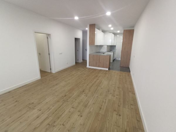 Sala espaçosa em open space com a cozinha.