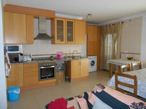 Cozinha totalmente equipada com placa, forno, exaustor, esquentador, frigorífico e máquina de lavar roupa.
