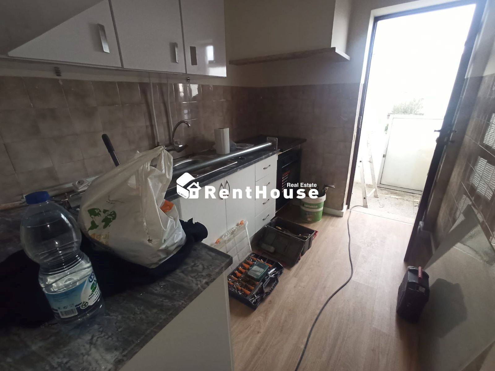 Cozinha remodelada totalmente equipada com placa forno, exaustor, frigorífico, máquina de lavar roupa e termoacumulador, bem como acesso a marquise.