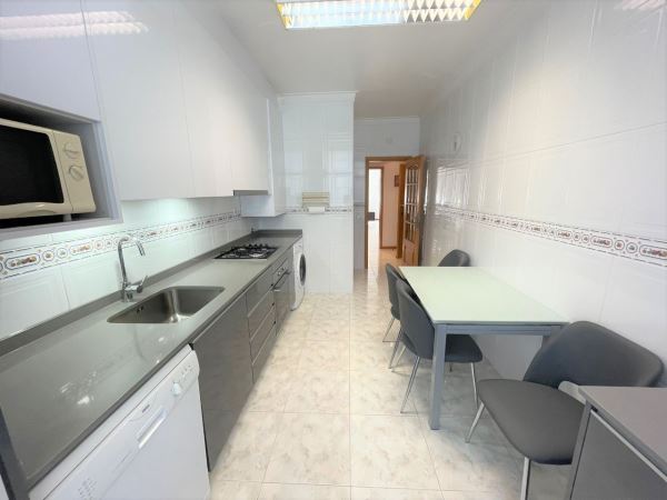 A cozinha foi recentemente remodelada e encontra-se totalmente equipada com eletrodomésticos novos. Dispõe de acesso direto a uma agradável varanda com churrasqueira, perfeita para momentos de lazer. Conta ainda com uma prática despensa de apoio.