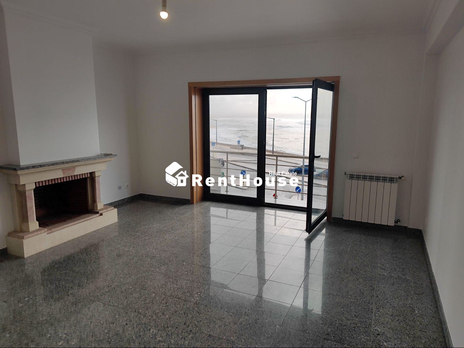 A sala é ampla e muito luminosa, equipada com lareira e com acesso a uma agradável varanda com vista frontal para o mar, ideal para momentos de lazer e convívio.
