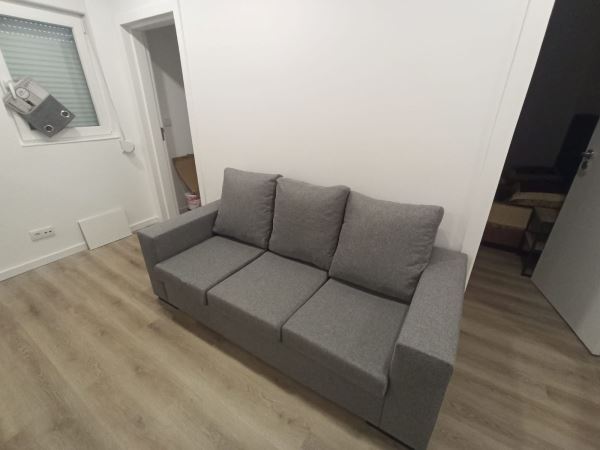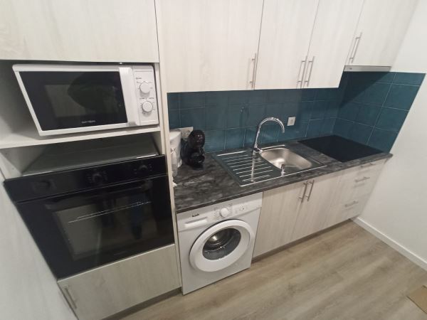 Cozinha equipada com placa, forno, exaustor, termoacumulador, frigorífico e máquina de lavar roupa. Acesso a despensa.