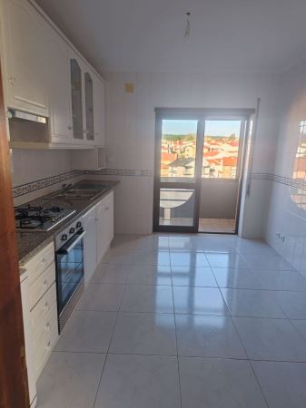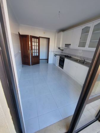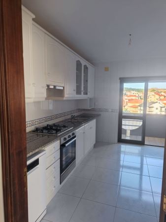 Cozinha equipada com placa, forno, exaustor, máquina de lavar louça e caldeira. Acesso a despensa e varanda marquisada.